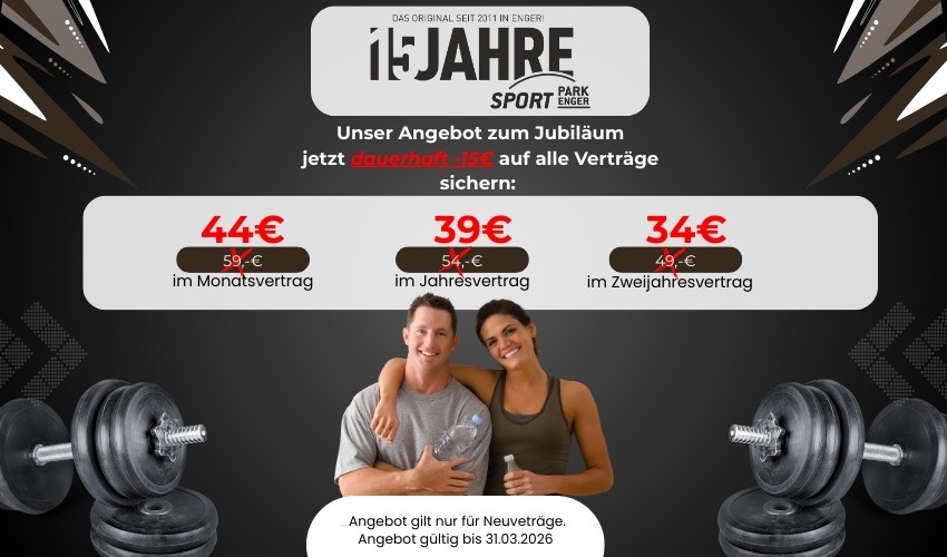 Seit 15 Jahren dein kompetenter Partner für Sport, Fitness und Gesundheit. Wir freuen uns auf dich! Lass dich von den Top-Angeboten und der familiären Atmosphäre überzeugen!